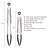 Cooking Tongs,Stainless Steel BBQ and Kitchen Tools with Silicone Tips,Set of 2-9,12 inches – Black
