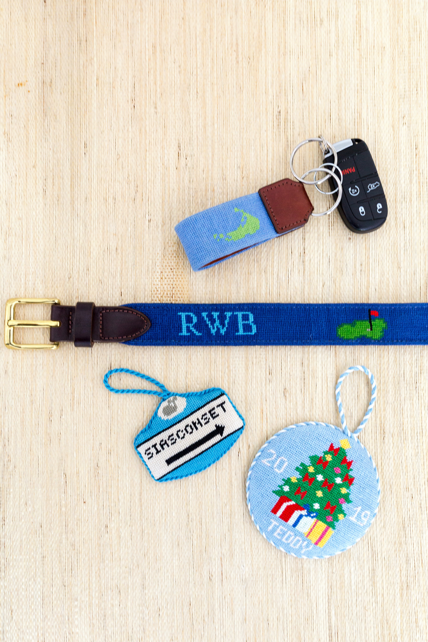 It’s been almost three years since my Grandy taught me how to needlepoint and I’m more thankful than ever to have a hobby that keeps my mind and hands occupied and off my phone. My dedication to carving out time for needlepointing definitely comes in waves — some months I’m exceedingly determined to finish a project and others I neglect it entirely. I’d been particularly neglectful of needlepoint since having Teddy six months ago, but lately I’m seeing so many people pick it up and it’s inspiring me to turn off the news and pick up my half-finished canvases again. I realized I never posted after I finished the needlepoint belt I made for Will’s 30th birthday (which admittedly he received closer to turning 31…) so I thought I’d round up a few of the projects I’ve completed, a few I’ve started, and a few more I’ve ordered to keep me busy during this extra time at home.